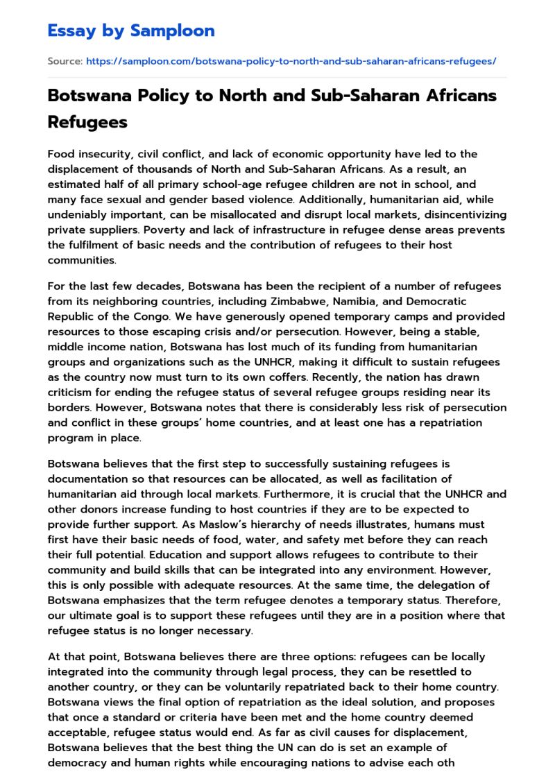 - ≫ Botswana Policy to North and Sub-Saharan Africans Refugees Free Essay ...